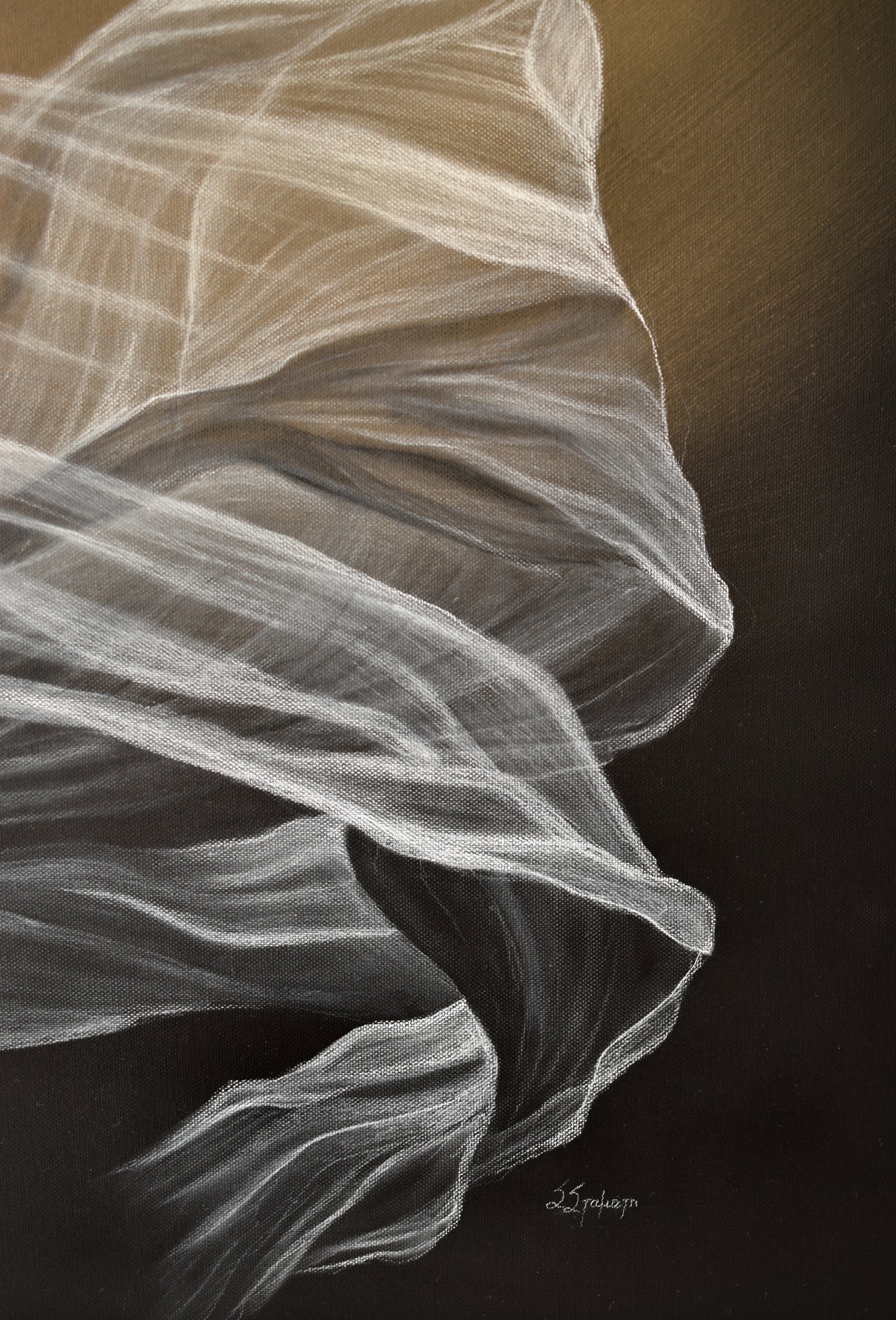 A woman with her eyes covered lets the wind carry her, as if she chooses not to see the truth around her. The veil is not only imposed by society but also serves as her own defense against a reality that might be painful. It symbolizes silent acceptance, yet also the moment before awakening.