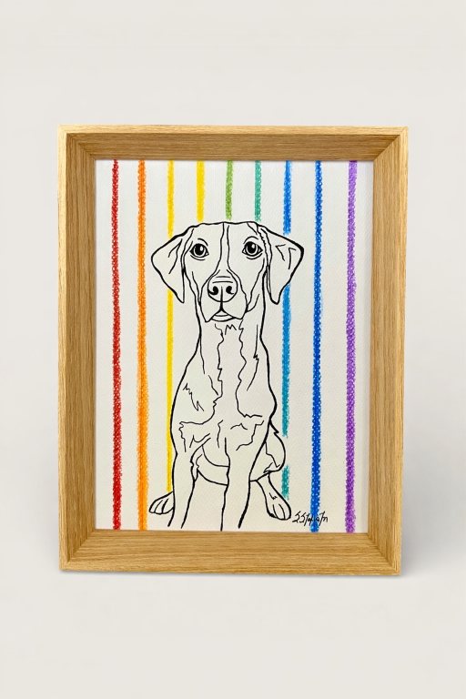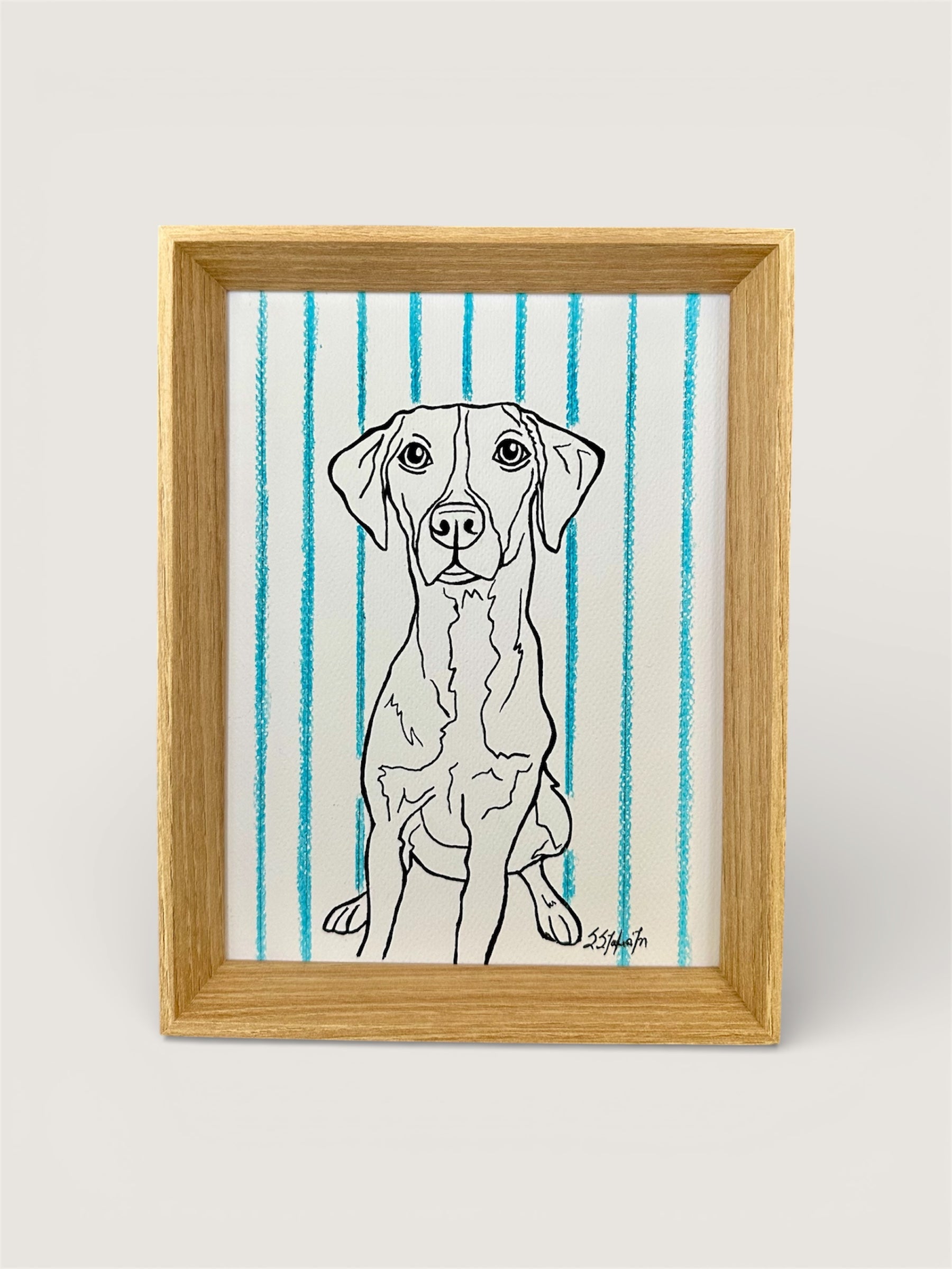 Turn your pet into a unique, minimal piece of art. Your pet’s portrait will be transformed into a hand-drawn one line illustration, created with a special pen and finished with a soft pastel background.